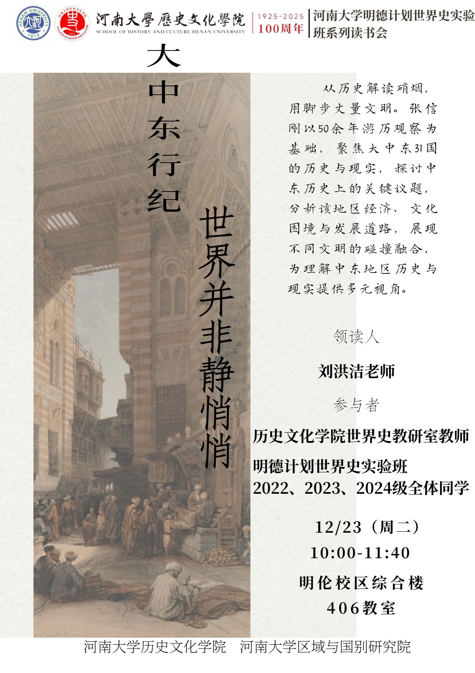 【讲座预告】河南大学读书会大中东行纪世界并非静悄悄