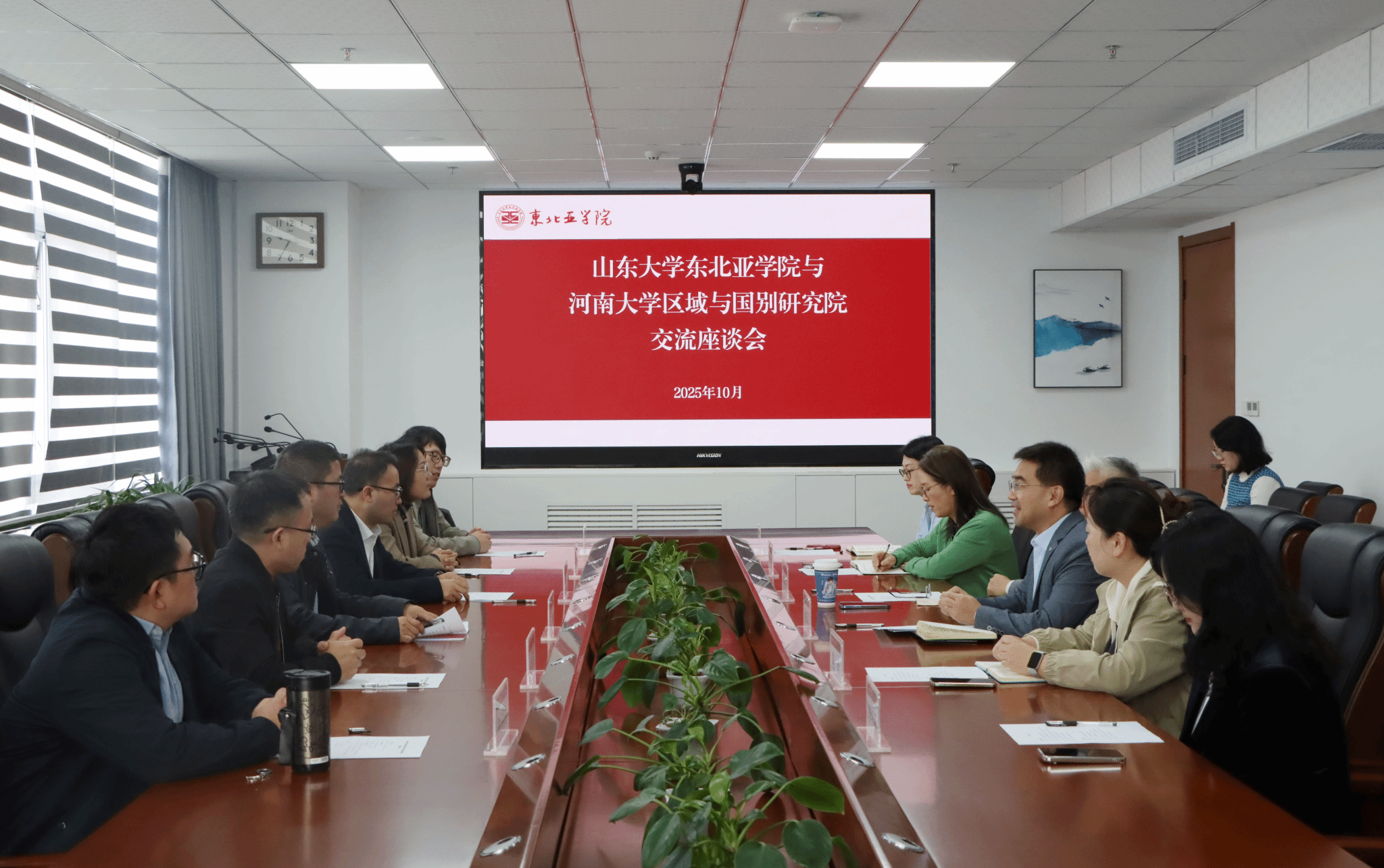 2025年10月17日,河南大学历史文化学院所属的世界史与区域国别研究团队一行赴山东大学东北亚学院开展调研座谈,就区域国别学建设情况进行深交流。此次调研旨在深化学科交叉背景下世界史+区域国别学的人才培养与智库服务等工作的开展。调研成员包括河南大学历史文化学院副院长胡浩教授、区域国别研究院副院长艾仁贵教授、区域国别研究院副院长兼秘书长孙银钢副教授、马丹静副教授以及刘洪洁、李泽源等青年教师。