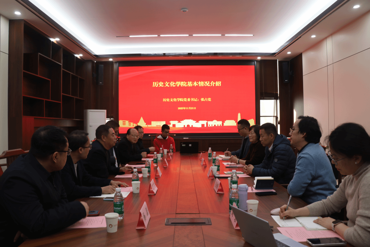 11月21日,河北师范大学历史文化学院来访交流,座谈交流会在明伦校区文物馆一楼会议室举行。河北师范大学历史文化学院党委书记李志军、世界史系郭华教授、王向鹏教授、世界史系主任刘京副教授、历史学专业教研室副主任李超,我院党委书记张占党、副院长胡浩,世界史系艾仁贵教授、孙银钢副教授、杨磊副教授,中国史系王坚教授等参加座谈会。座谈会由胡浩主持。