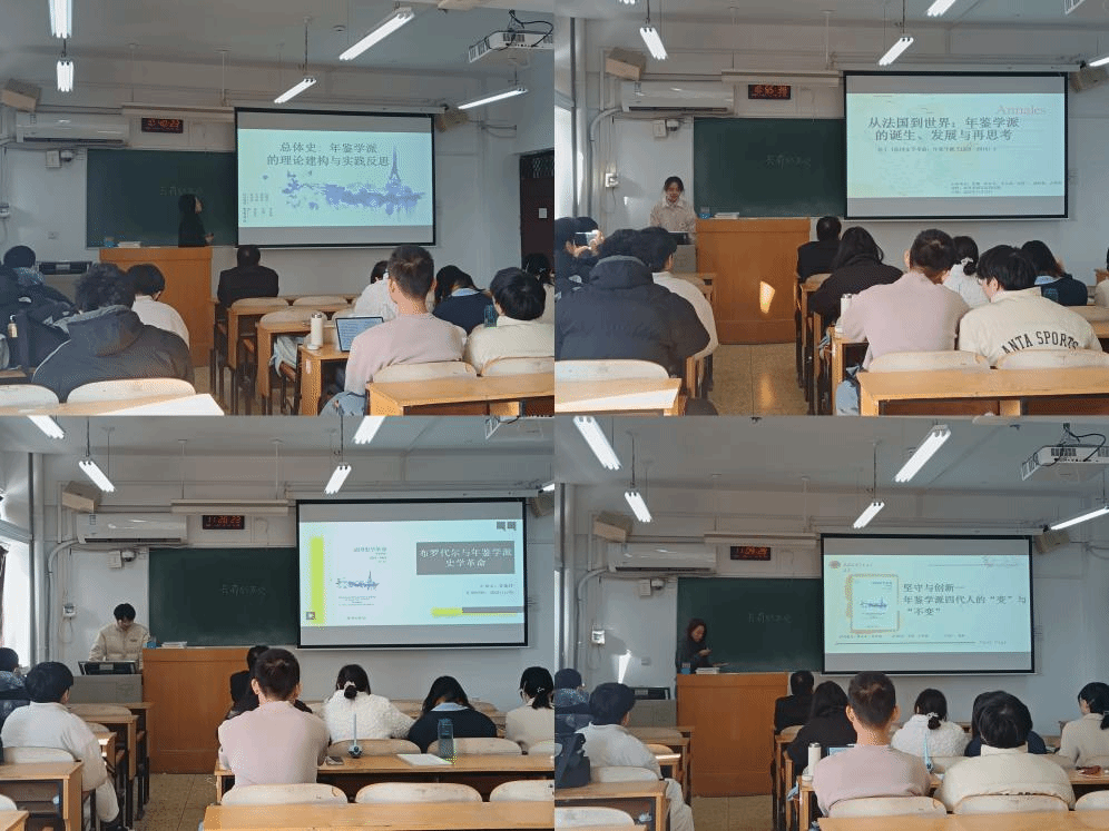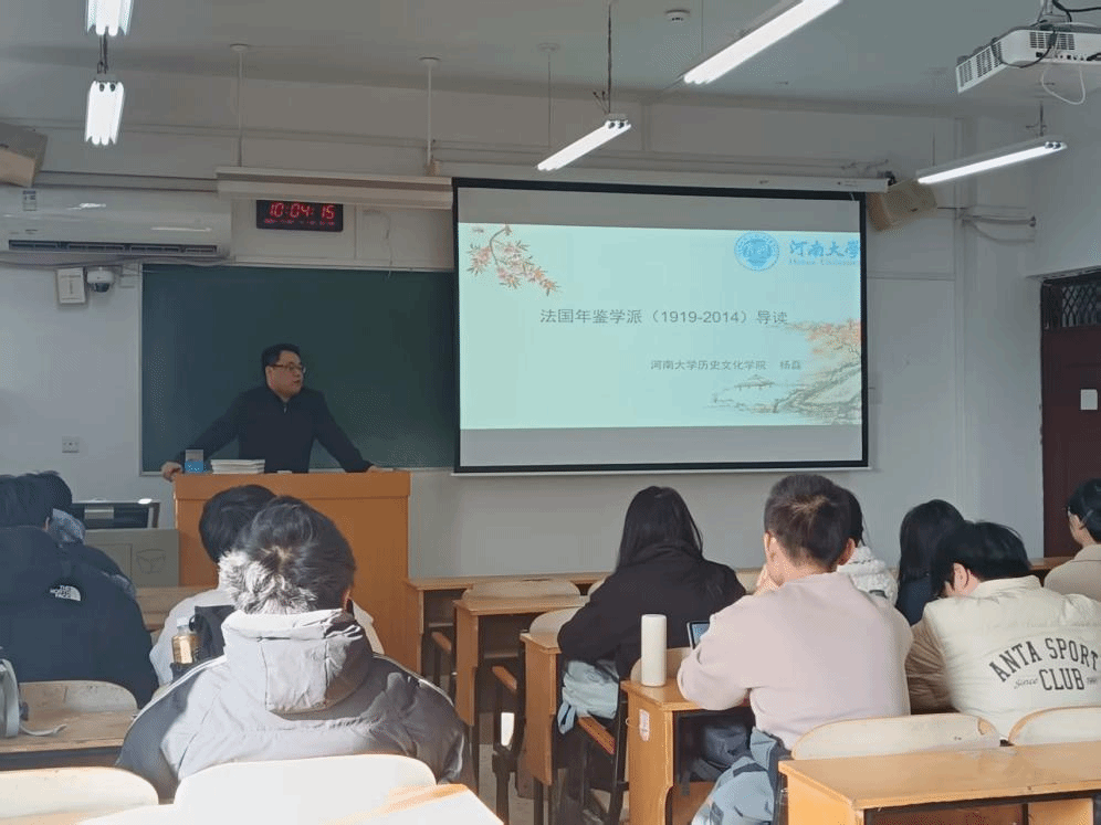 2025年11月25日上午,由河南大学历史文化学院世界史系、区域与国别研究院主办的“明德计划”世界史实验班系列读书会在明伦校区综合楼406教室举行。本次会议围绕彼得·伯克《法国史学革命:年鉴学派,1929—2014》一书展开汇报交流,由世界史教研室杨磊老师领读,2022级、2023级、2024级实验班全体同学参加活动。