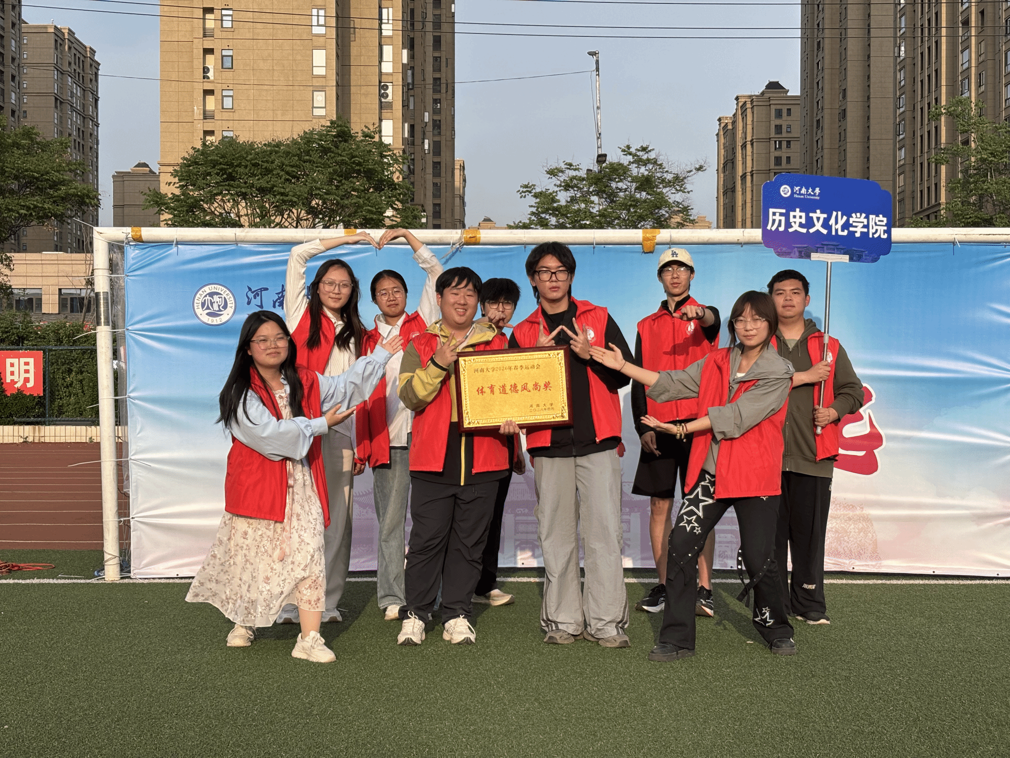 历经三日激烈比拼,历史文化学院满载而归,多项赛事名列前茅,总体获得河南大学2026年春季运动会体育道德风尚奖。
