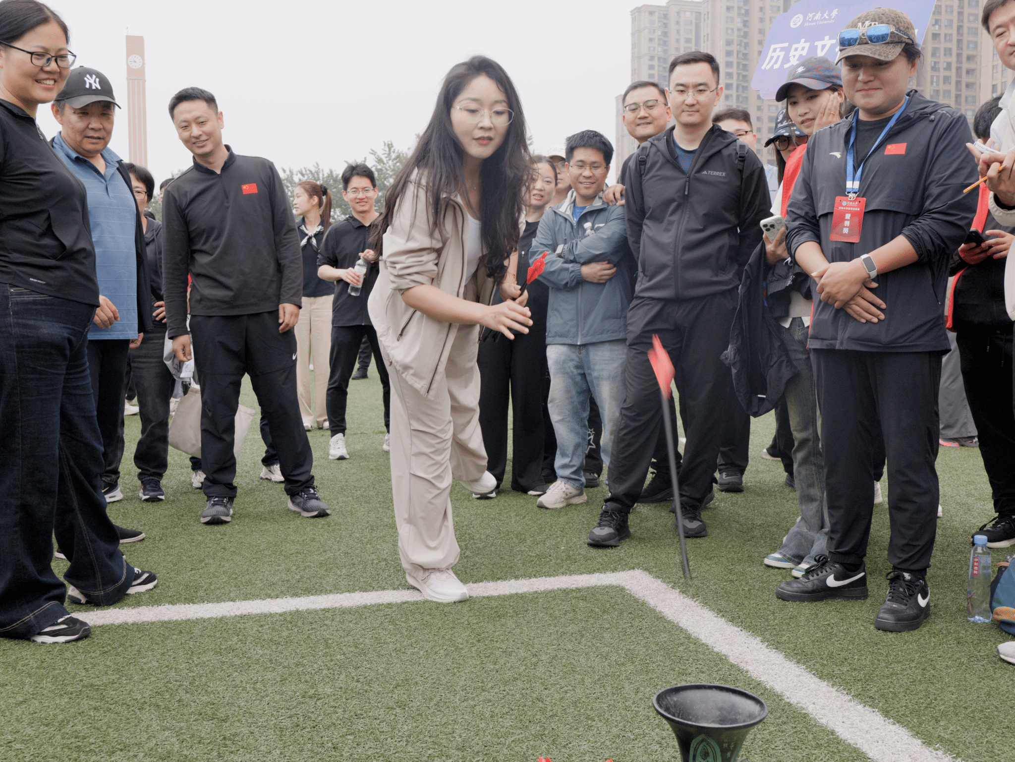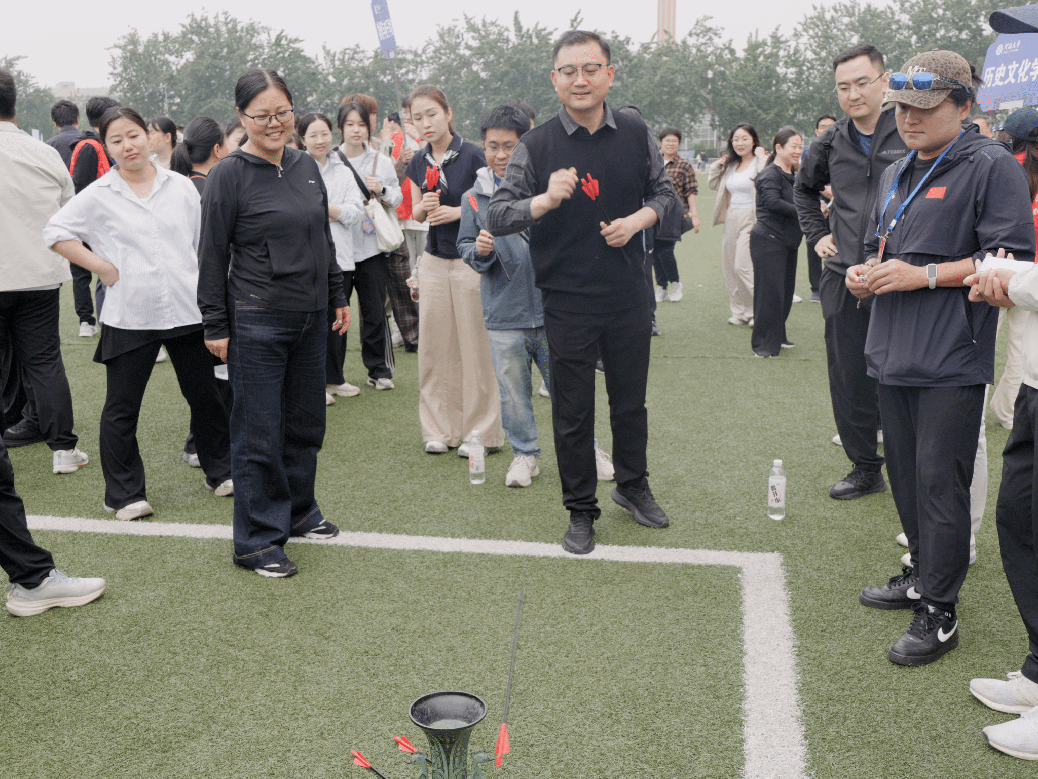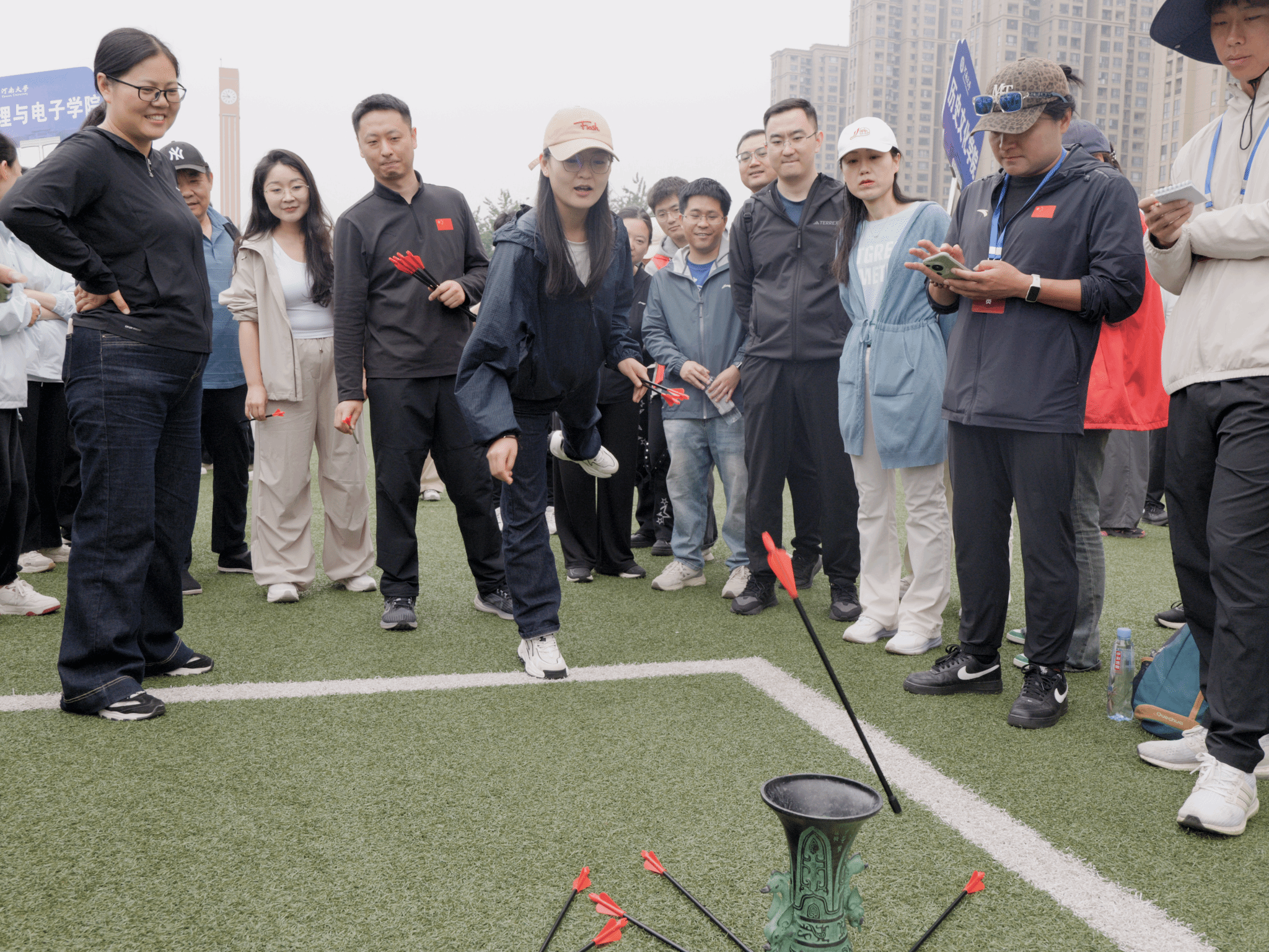 三尺讲台,桃李自成蹊;几处赛场,锋芒未肯藏。投壶项目中,历史文化学院的教职工们手腕轻转,箭矢应声入壶,引来阵阵喝彩;飞盘九宫格前,老师们侧身瞄准、挥臂掷出,一道道流畅的弧线划破晴空;三千米长跑赛道上,孟兆鑫老师脚步坚定、不言放弃,一路奔跑向前,用汗水诠释着坚韧不拔的体育精神。