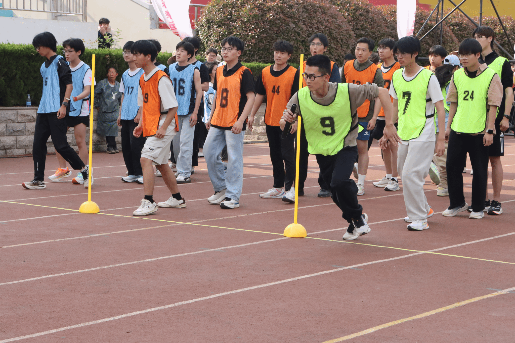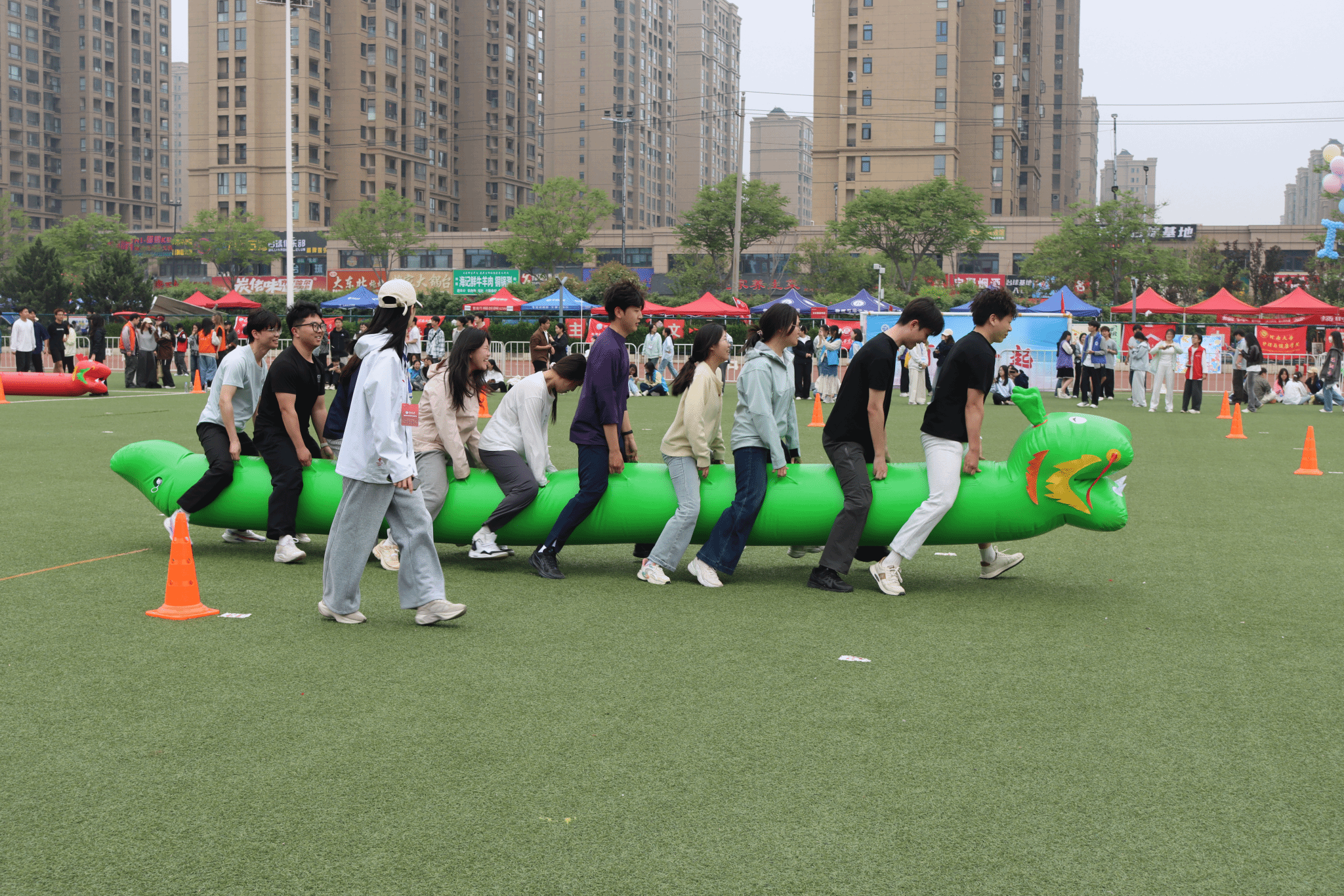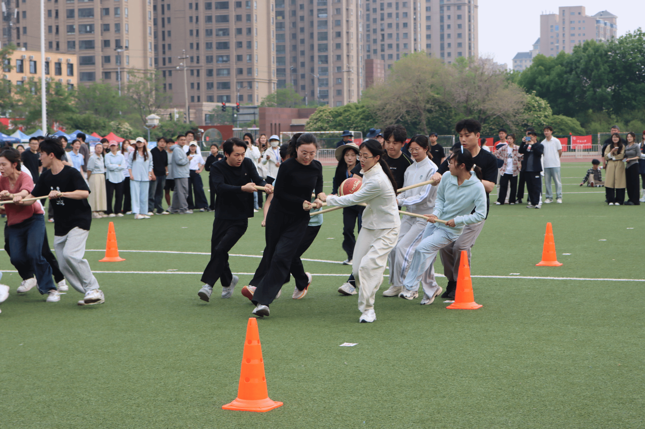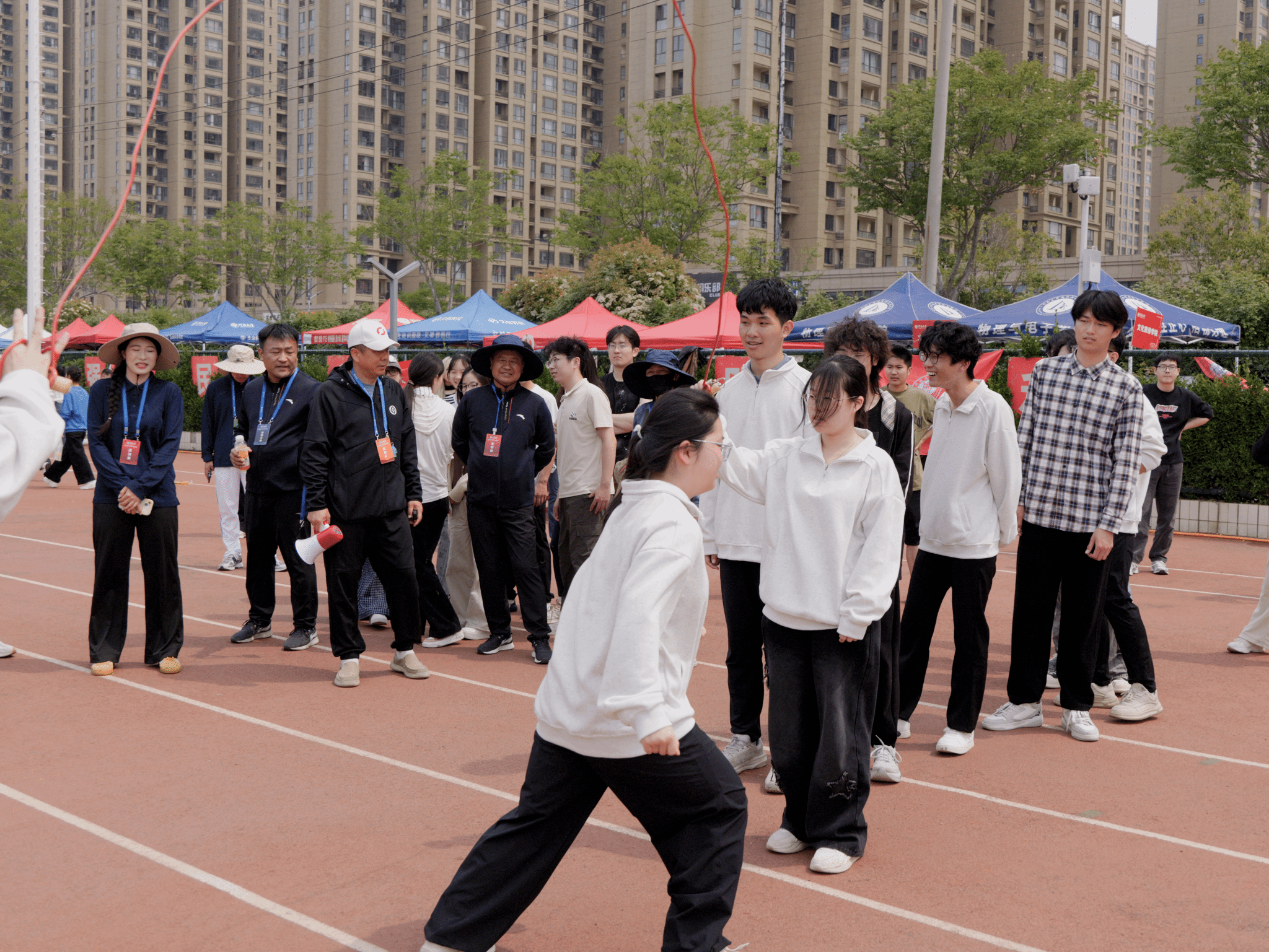 旱地龙舟上,同学们步调一致、齐力向前,在默契配合中奋勇争先;飞盘九宫格前,一道道弧线精准穿越,考验着眼力与巧劲;四人五足的赛道上,彼此扶持、步伐统一,踏出同心同行的坚定节奏;袋鼠跳迎面接力中,大家奋力跳跃,欢笑与鼓舞声此起彼伏;60米迎面接力风驰电掣,欢呼声与脚步声交织成最热烈的乐章;众星捧月项目中,大家同心协力,八支木杆紧紧相连,凝聚成一股劲;集体跳绳翻飞如练,轻盈跃动的身影,编织出属于历院最鲜活的青春图景。