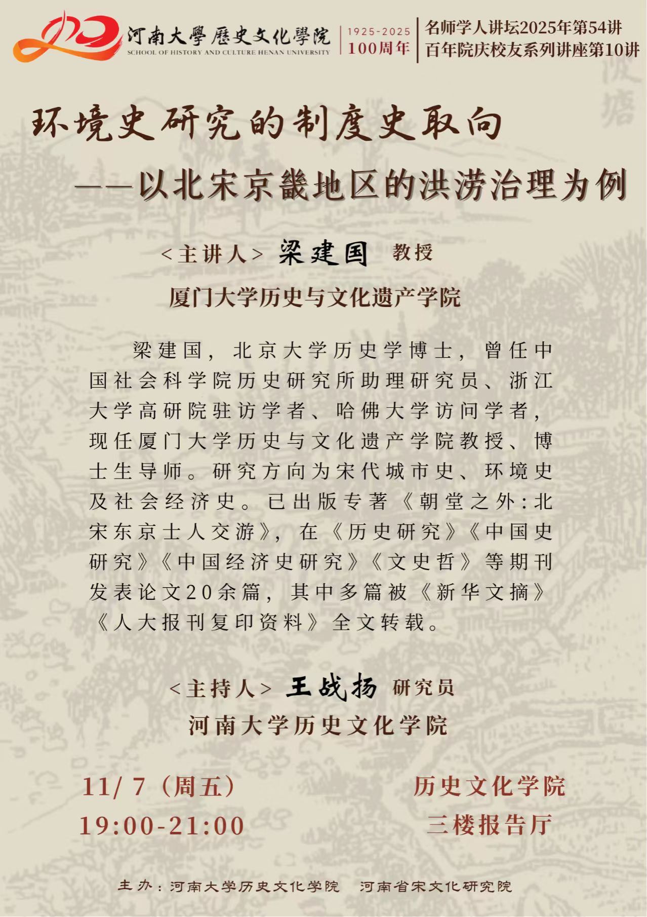 【讲座预告】梁建国:环境史研究的制度史取向--以北宋京畿地区的洪涝治理为例