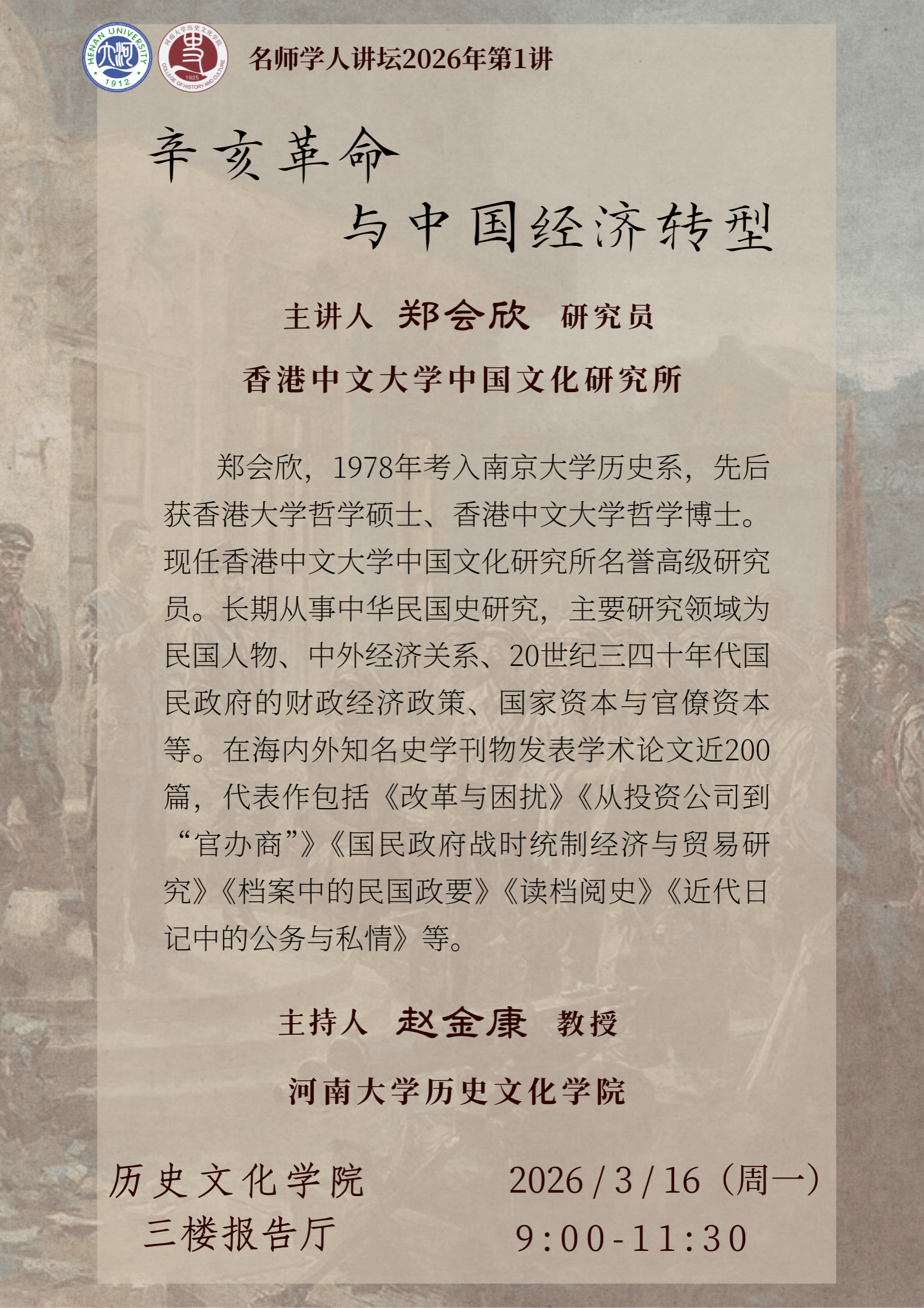 【讲座预告】郑会欣:辛亥革命与中国经济转型