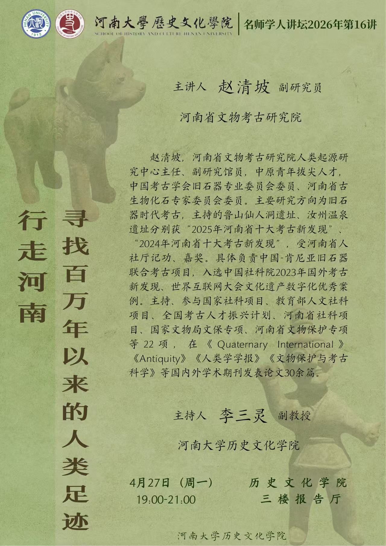 【讲座预告】赵清坡:行走河南:寻找百万年以来的人类足迹
