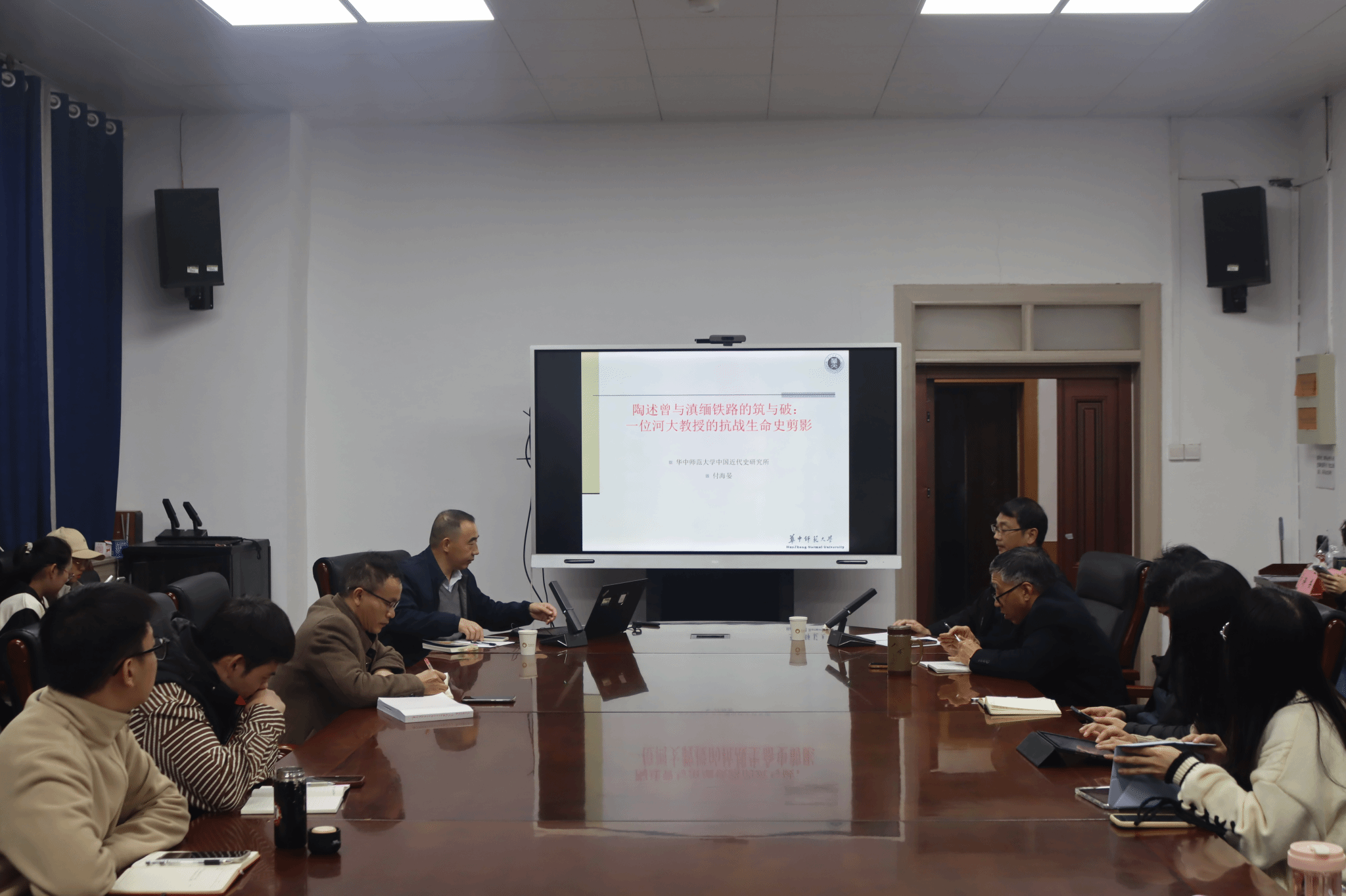 11月1日下午,华中师范大学历史文化学院中国近代史研究所教授付海晏受邀在河南大学历史文化学院三楼报告厅作题为《陶述曾与滇缅铁路的筑与破:一位河大教授的抗战生命史剪影》的讲座,本场讲座由河南大学历史文化学院赵广军教授主持。