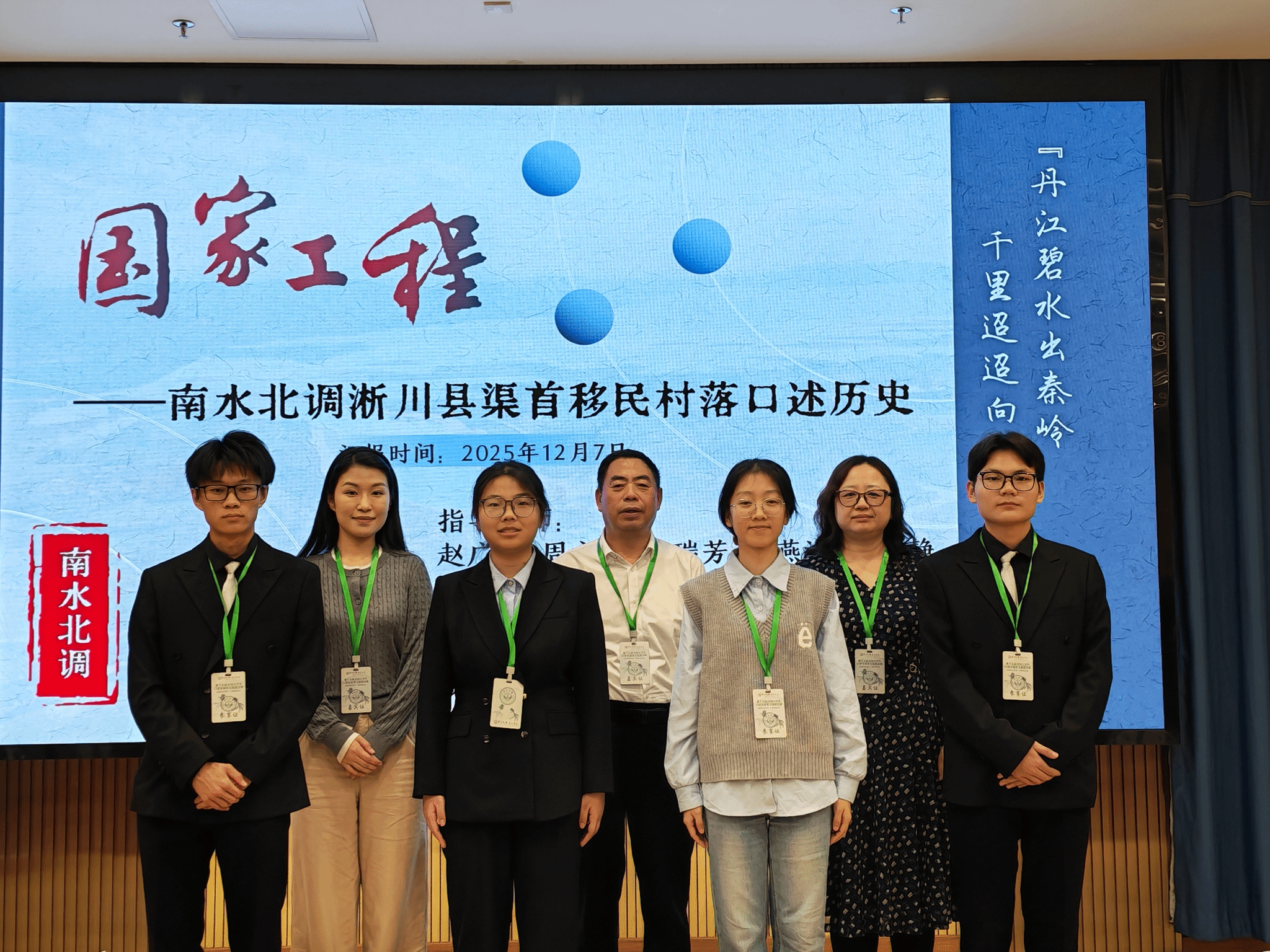 “渠首移民溯源队”由历史文化学院2023级、2024级历史学专业詹本维、娄洞梁、殷顺一、敬婧、王奕涵、刘梦华等六位本科生组成。团队以国家重大工程——南水北调淅川县渠首移民村落为研究对象,在赵广军、周文凯、王瑞芳、付燕鸿、胡优静等五位老师的指导下,历时数月深入访谈、整理素材、修订文本,最终完成近三十三万字的口述史成果整理稿。